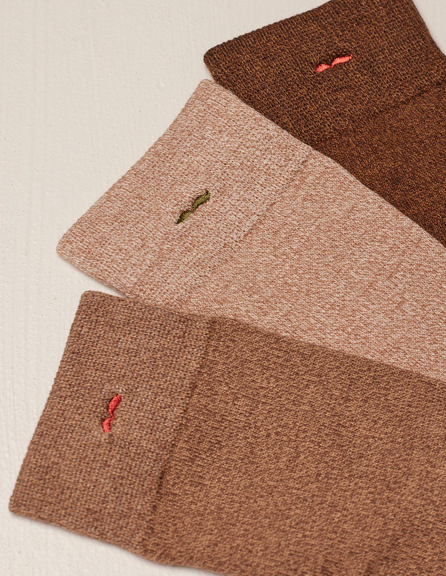Een van Mr. Moustache’s iconische sokken voor heren! Een gemêleerd pakket van paar 3 sokken in bruin en écru.